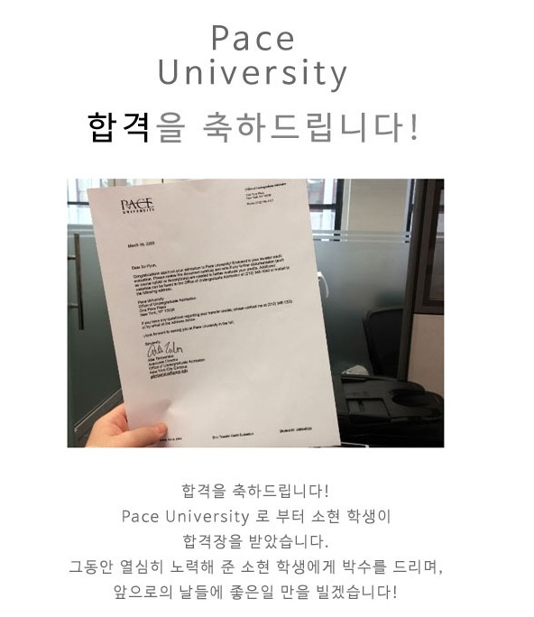 [합격장] Pace University 합격을 축하드립니다